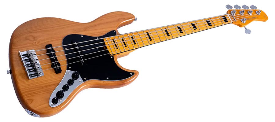 alder 5-string active bass guitar natural