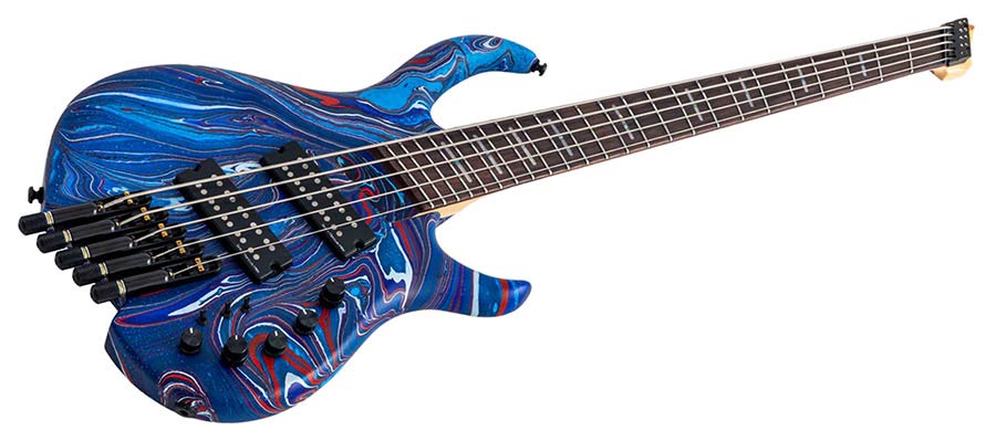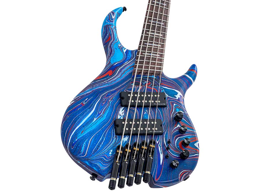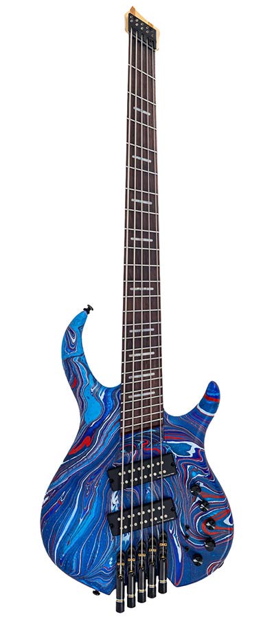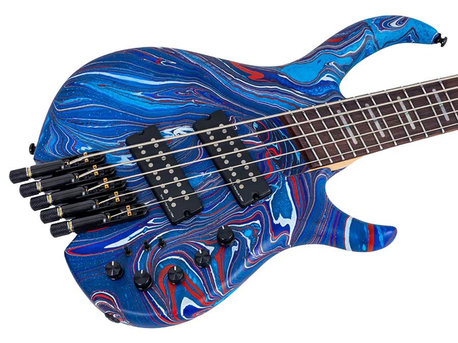 mahogany 5-string active bass blue swirl, with gigbag