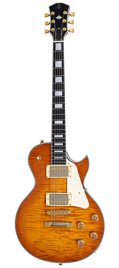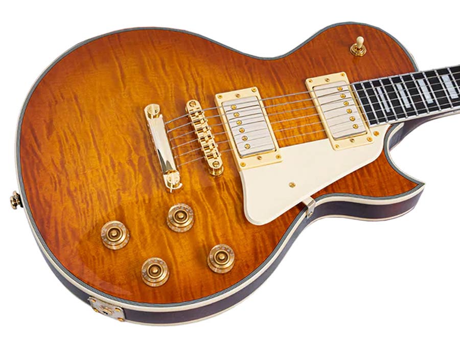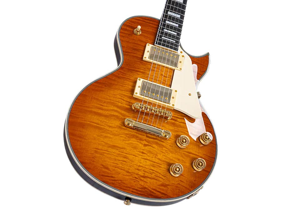 mahogany + maple top + flame veneer electric guitar L-style, amber burst