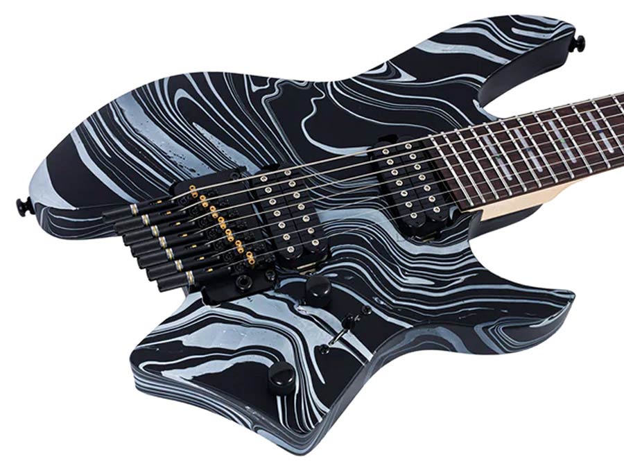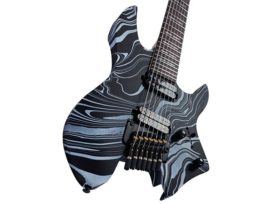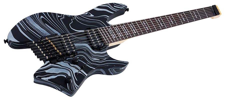 mahogany + maple top 7-string electric guitar black swirl, with gigbag