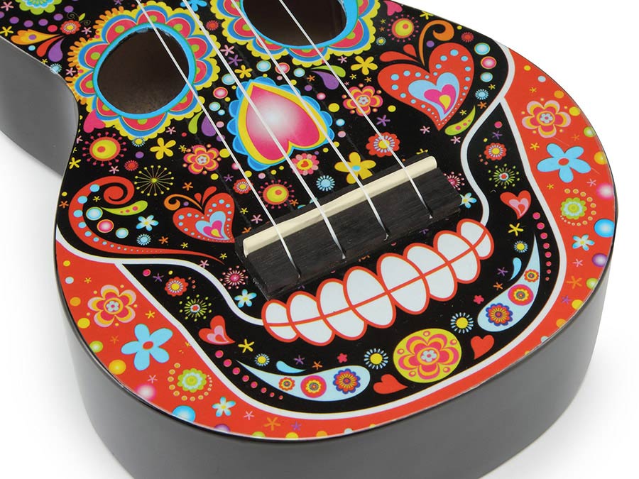 sopraanukelele "Skull", Art series, zwart, inclusief tas
