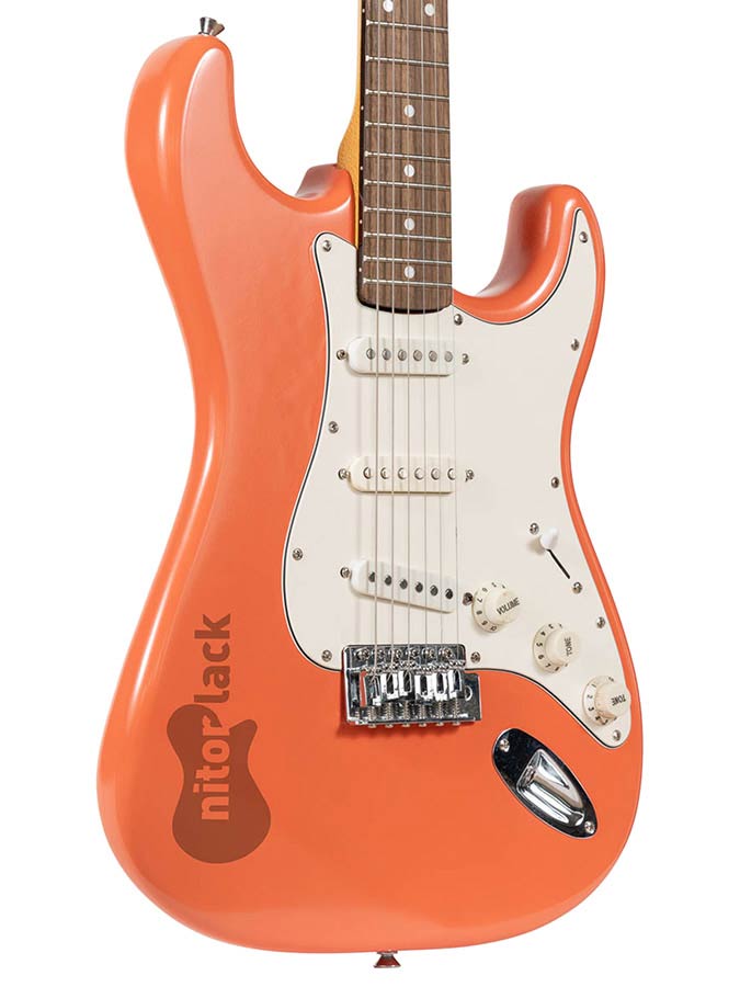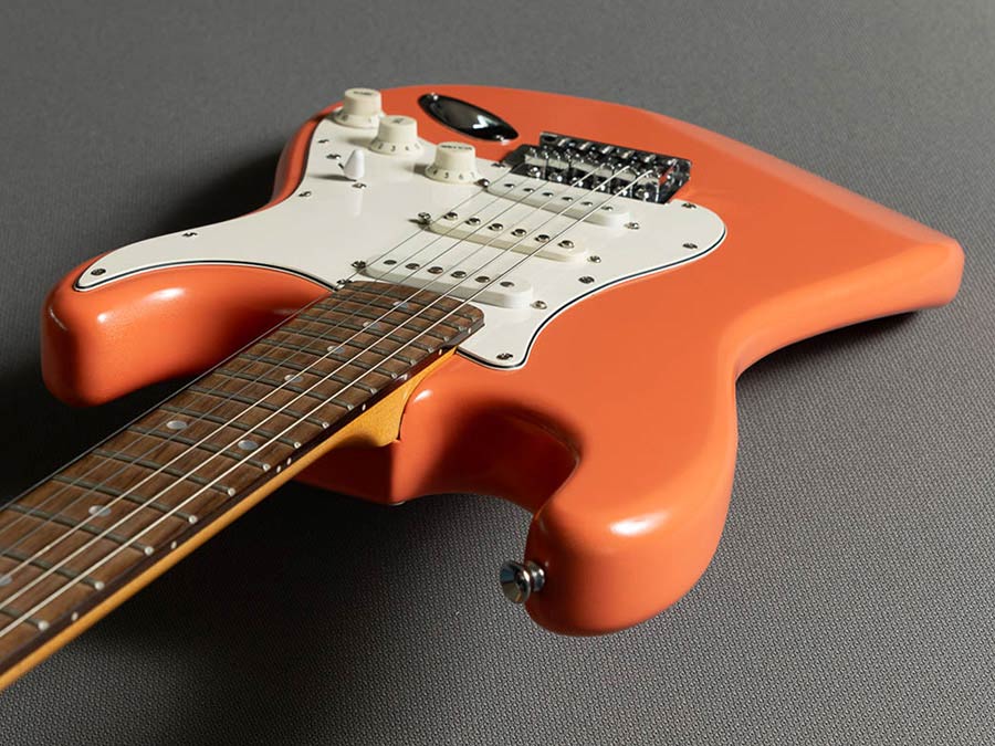 The Coral Pink finish is somewhat controversial. It became famous in the early sixties as Hank Marvin from The Shadows referred to the colour of his Stratocaster guitar as "Flamingo Pink". This colour however isn't found in any documents by Fender. Also it's possible that aged/faded Fiesta Red guitars will turn to a hue nearly identical to this Coral Pink. Either way this colour is highly sought after and little used by Fender, but we offer it for you to enjoy its strong pink with nice orange tones.
