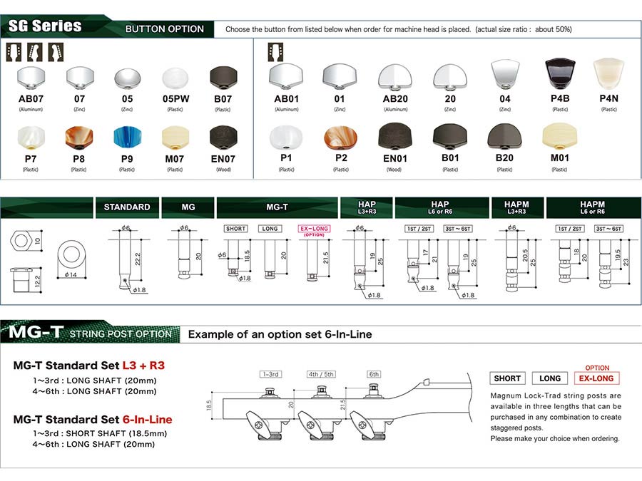 SG381 machine heads with 07 buttons, 6R, chrome